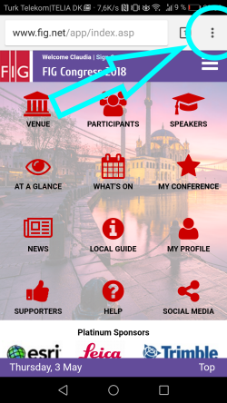 Please note that as a web application FIG Conference Web App does not require device specific downloads or installations but can be used by just accessing the above mentioned address with a browser using a desktop/laptop computer, tablet or any modern mobile device, disregarding the operating system.