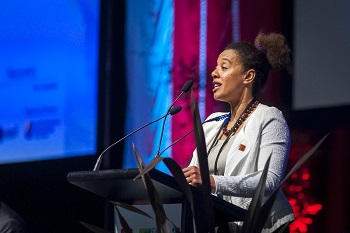 Diane Dumashie, Chair of Regional Capacity Network, making her report to the General