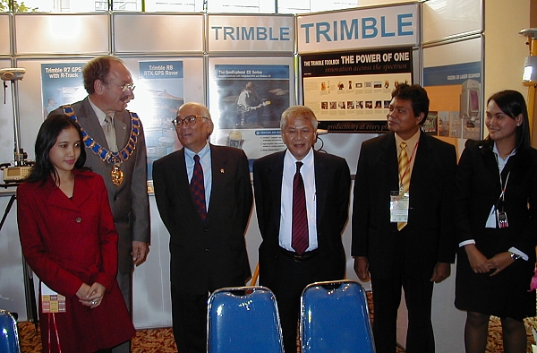 The VIP guests visited the exhibition - here at the Trimble booth which