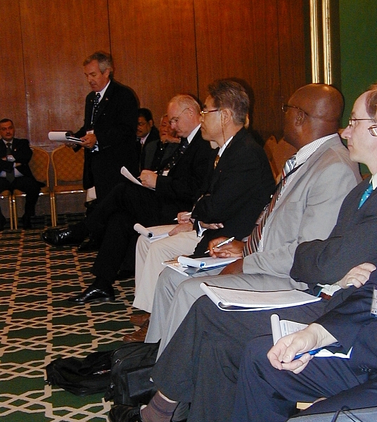 Eng. M. Mosaad Ibrahim briefing the FIG and GSDI Councils about the conference arrangements.