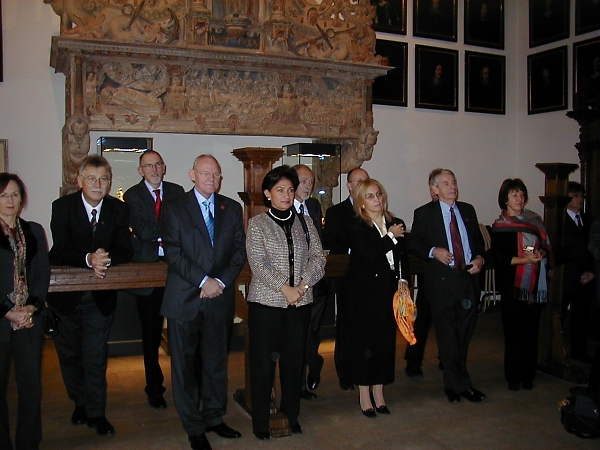 Invited guests at the Friedensaal (Hall of Peace) where the negotiations on the peace after the 30-year long war took place in 1640s.