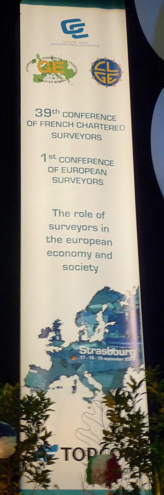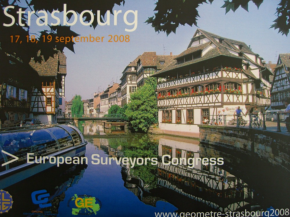 Most presentations were in French with a few in English and German. Simultaneous translation was provided at all sessions. The conference profile can be found at http://www.geometre-strasbourg2008.eu/. Conference proceedings are available at: http://www.geometre-expert.fr/www/cmsMng.do?ID_RUBRIC=281&ID_PAGE=11989, and at the CLGE website: http://www.clge.eu/