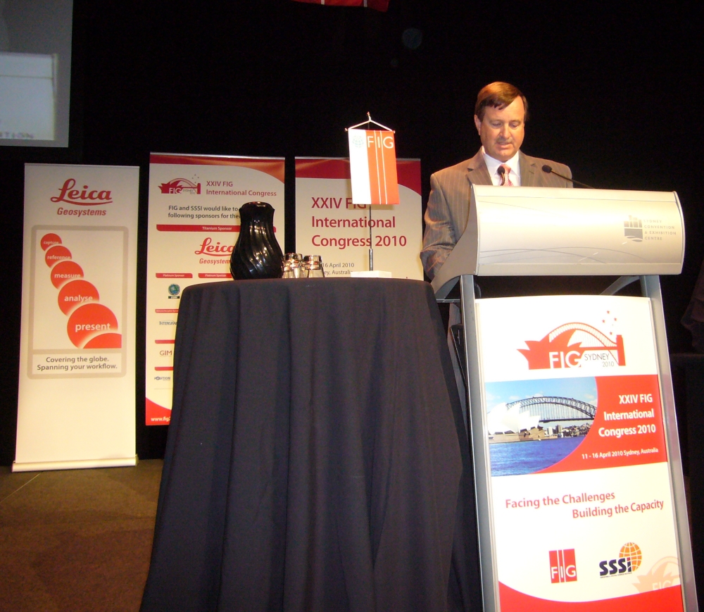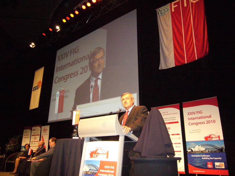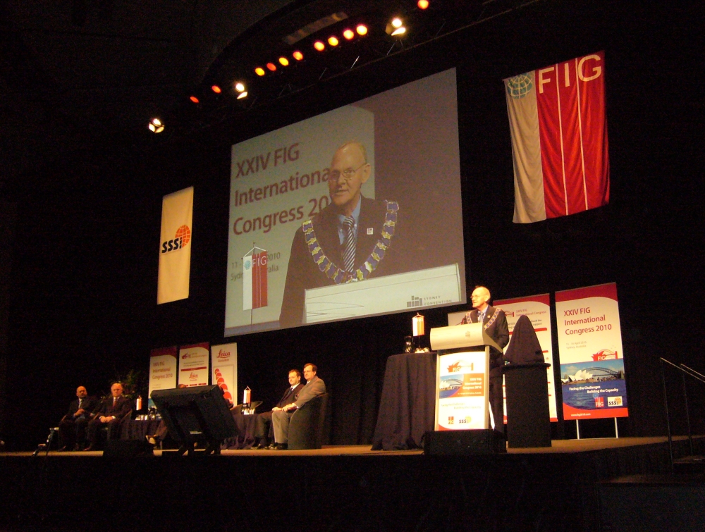 Dr. Marie Bashir making his welcome address at the FIG XXIV
