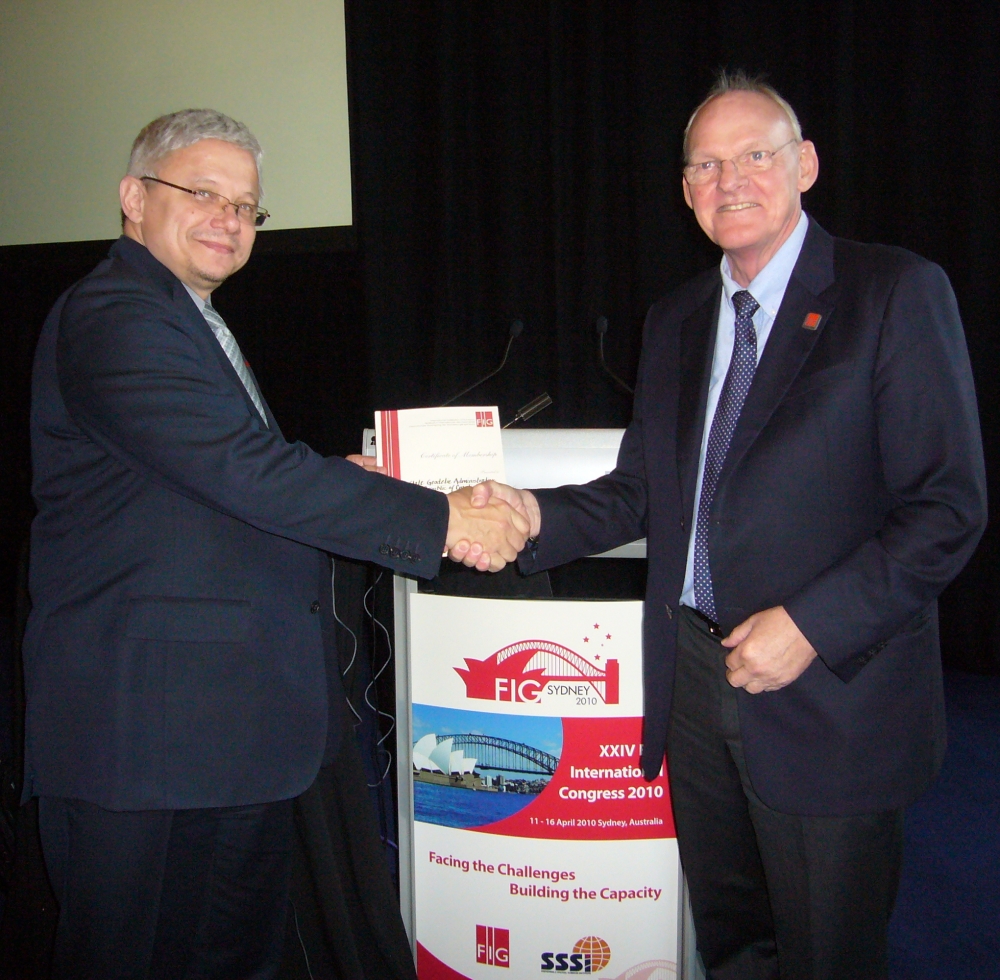 President Stig Enemark gave the membership certificate of the State Geodetic Administration of Republic of Croatia to Director General Željko Bačić at the DG Forum. Altogether ten new affiliate members were approved in Sydney.
