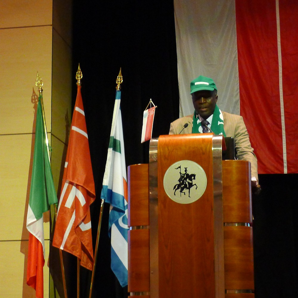 The Ambassador of Nigeria presenting the personal greeting from President of Nigeria Goodluck Jonathan to FIG.