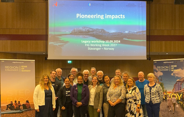The city of Stavanger had organised a legacy workshop, using FIG Working Week 2027 as example on how to work with potential legacy projects that can benefit both FIG, the local organisers and the City of Stavanger. Jane Cunningham, Destinations International, was invited as moderator of this workshop, and she gave a thought-provoking introduction to how to work with legacy both from an association and a destination point of view. Louise Friis-Hansen lined up the background for the yearly FIG conferences (Working Weeks and Congresses) and showed examples of previous legacy projects that FIG has worked with in cooperation with conference destinations. FIG President Diane Dumashie gave her input to the local organisers, who attended the workshop, on the focus areas of FIG Council and what might be areas of interest for FIG when in Norway.