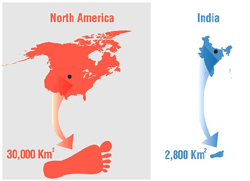 footprint covered 13.7 billion hectares in 1999, or 2,3 hectares per person