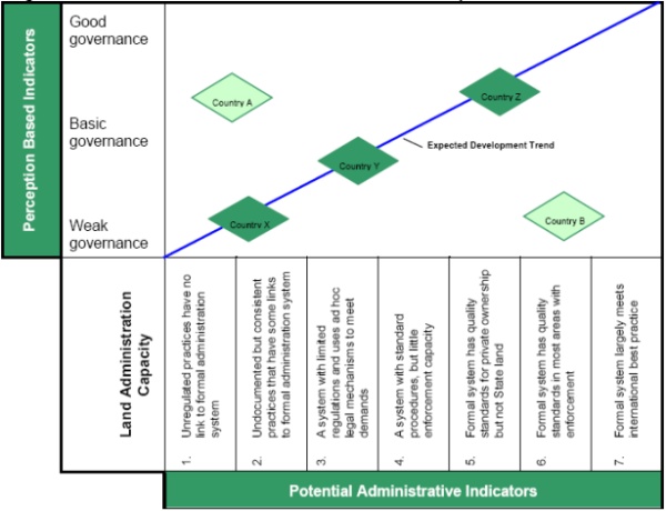 Land administration theory has developed a new, multi-disciplinary approach to building, designing and managing land administration systems (LAS). The articulation of the approach runs parallel to development of land indicators to improve reliability and usefulness of international comparisons of LAS tools, especially in response to demands for good governance.
