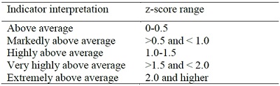 Table 1: Z-score table used to interpret the standardized values of the indicators