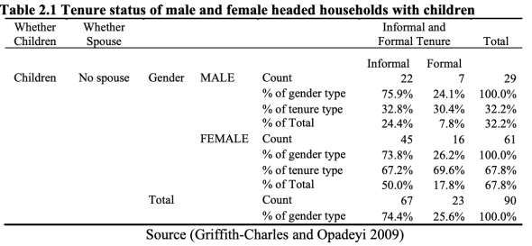 67% of the informal parcels are occupied by female headed households as