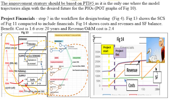 Project Financials - step 7 in the workflow for design/testing  (Fig 4). Fig 13 shows the SCS of Fig 11 compacted to include financials. Fig 14 shows costs and revenues and SF balance. Benefit /Cost is 1.6 over 20 years and Revenue/O&M cost is 2.4