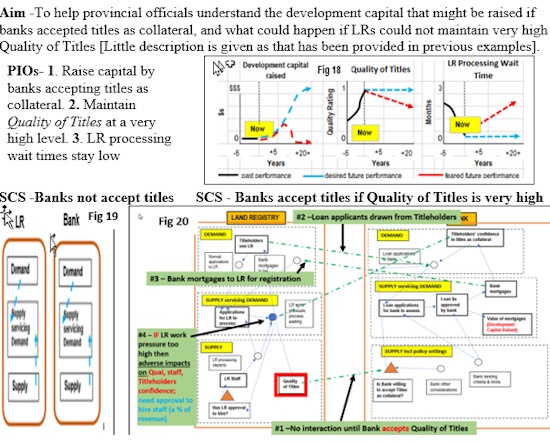 The examples used to illustrate the SD approach Four examples are outlined in this paper. Example 1:(Sec 3) Removing a backlog in a LR. Example 2:(Sec 4) Improving quality in a LR, winning back customers; achieving financial sustainability. Example 3:(Sec 5) Quality has subcomponents under the control of different agencies. Example 4 :(Sec 6) Raising development capital if banks accept titles as collateral. Full details in Lyons (2022).