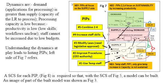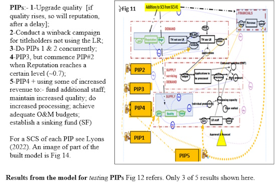 4.1 Applying the workflow Fig 4, to test PIPs (Performance Improvement Proposals) The PIOs:- 1-Improve quality 2-Win back titleholders not using the LR; 3-Increase revenue 4-Maintain low backlogs 5-Make financially sustainable using some of increased revenue