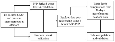 GNSS-derived water level measurement technique is well-known (André et al., 2013; Bisnath et al., 2003; Cheng et al., 2004; Dodd, 2009; Hocker & Wardwell, 2010; Knight et al., 2020; Lin et al., 2017) and has been proposed for water level observations, tidal datum extensions, and datum improvements (Bisnath et al., 2003; Cheng et al., 2004; Dodd, 2009; Hocker & Wardwell, 2010). However, utilizing the technique for tidal datum extension offshore would require at least 30-day GNSS water level observations to estimate the tidal signal constituents. Furthermore, such observation aboard a buoy or a USV may utilize quality and cost-effective sensors like the affordable GNSS receiver.