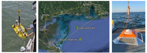 The first experiment occurred on May 27, 2021, at 29.9858N, 088.5379W (Figure 2). We deployed a USV (EchoBoat) housing a Septentrio Mosaic GNSS receiver and a survey-grade GNSS+INS from one of the University of Southern Mississippi’s (USM) research vehicles, R/V Point Sur. The second experiment occurred at 26.61589N, 88.41786W on March 1, 2022, using the same GNSS receiver and tactical-grade GNSS+INS hardware aboard a different USV (SeaTrac).