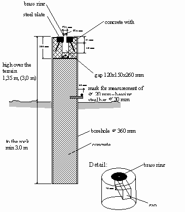 The control network is the basis of all geodetic measurements realised before, during and after the tunnel construction. Therefore points require special stabilisation and protection. The so-called deep stabilisation is used, realised borehole completed by concrete (Fig.2). The heads of these points are equipped with universal compound, used for forced centration of instruments, marks, prismas and GPS receivers.