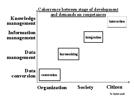 The different organizations do not have to go through all the phases. Many starts with letting one or more technicians purchase equipment for digitalisation and conversion of data. In those cases there is great risk that the technicians afterwards will sub-optimize in order to protect their own position of power.