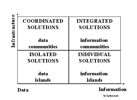 After a short while users outside the organization would like to use your information together with data from others. But it is not that easy to follow a vertical track from information-islands to information-communities. Quite normally it is difficult and often impossible to combine information from different sources.