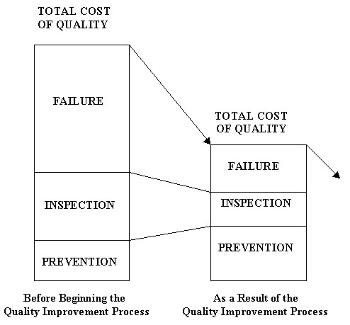1. Prevention Costs Prevention costs can be regarded as an investment because preventing (as opposed to correcting) quality problems makes the organisation much stronger over time. 2. Inspection and Correction Costs Inspecting and checking other peoples work is a role which virtually all managers and supervisors must fulfil each day. Yet, in most cases, neither the inspector nor the inspected finds this aspect of his or her job gratifying. 3. Failure Costs Quality mistakes that turn up outside the organisation, after the service is delivered to the customer are costs that must be avoided. Your organisation is cast in the worst possible light when it fails to meet your customer's valid requirements. In hard monetary terms, failure is by far the most costly quality problem. The cost of recalling or to 'make good' on a service delivered unsatisfactorily is extraordinarily high.
