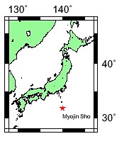 Myojin-Sho (31º56'8" N, 139º59'8" E) is a submarine volcano located on the volcanic front of the Izu-Ogasawara Arc and about 10 kilometers east of the Bayonnaise Rocks (31º55'3" N, 139º54'5" E). The first observation of a volcanic eruption was made in 1869, and during the 130 years since then, more than ten volcanic eruptions and several appearances and disappearances of an island were reported.