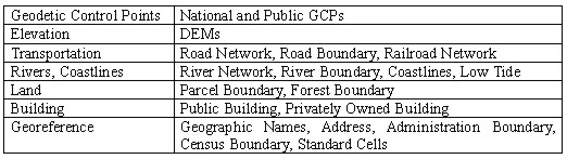 The technical standard included in the Final Report was developed through collaborative research between the Geographical Survey Institute and 53 private companies during the three-year research period starting 1996 and second phase is now continuing (explained below). Table 1 shows the list of data items for the Japanese framework data.