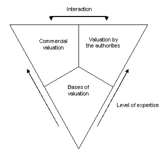 I am convinced that FIG should work in the field of valuation especially for enhancing the surveyors' knowledge of the subjects valued and understanding of the principles of value formation. I believe that it is neither FIG's duty to create new valuation standards nor to arrange education for the commercial valuation sector. In the commercial sector there are standards and active associations. Within the existing resources FIG should, however, promote the know-how on real estate valuation and development of the valuation activities in the member associations and also in those countries still lacking advanced valuation systems. The valuation systems by the authorities are functioning well in most of the countries but contacts between the countries seem to be rather modest. The valuation systems in the developing countries and countries in transition are normally quite inadequate. When land is readjusted changes in the real estate structure and valuations are needed. The need for familiarising the bases of valuation and compensations could be the target area for FIG. Knowledge and level of expertise grows from the bases of valuation to commercial valuation and/or to valuation by the authorities e.g. valuation for compensation in compulsory purchase (Figure 1).
