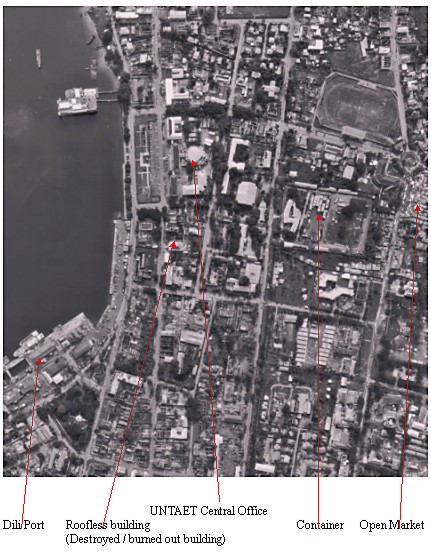 In addition, many of the urban facilities, buildings and ordinary houses had been damaged during the violence after September 1999 in the areas to be covered in the digital topographic maps created in this Study. Some of the governmental facilities and buildings used in the Indonesian period are now used by UNTAET and PKF, but others have been abandoned.