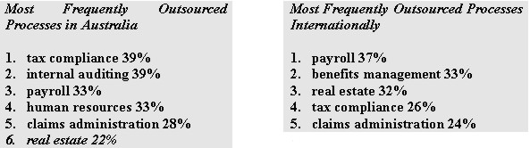 Furthermore, in the non-core functions identified in this research paper, it was established that generally companies are outsourcing those business processes that are not core to their fundamental business operations. The following tables indicate those most frequently outsourced business processes: