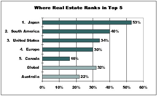 At the time of the survey real estate outsourcing rated sixth in Australia as an activity most frequently outsourced - given recent developments, this trend is changing. The following graph indicates those countries where real estate outsourcing actually ranks in the top five.