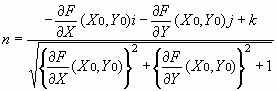 Where Xi, Yi and Zi are positions of arbitrary points in the object space. Also, a two order surface equation is defined in Equation 5 for the determination of roughness from the reference surface, and the coefficient of this equation is computed by the least square method just as in the plane equation. And the normal distance from an arbitrary point in the sample area to the reference surface should be computed by a unit normal vector as shown in Equation 6.
