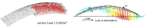 Fig. 12: Semilateral loading of a shell construction and predicted settlements (Hesse et al. 2000)