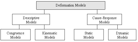 The paper in hand is the result of the studies of the Ad-Hoc Committee 'Classification of Deformation Models and Terminology' of Working Group 6.1 'Deformation Measurements', FIG Commission 6. The Ad-Hoc Committee was set to work due to a recommendation of the chair-man of FIG-Working Group 6.1 on the occasion of the 6th International FIG-Symposium on De-formation Measurements in Hannover in 1992. Earlier reports were given on the 7th International FIG-Symposium on Deformation Measurements in Banff, Canada in 1993, on the Perelmuter Workshop on Dynamic Deformation Models in Haifa, Israel in 1994, and in 1996 at the 8th International FIG-Symposium on Deformation Measurements in Hong Kong. A summary of the studies was presented at the 9th FIG-Symposium on Deformation Measurements in Olsztyn, Poland in 1999. The closing session of this symposium was devoted to a comprehensive discussion on the topic. It was concluded by the chairman of Working Group 6.1 summarizing the activities concerning the methods and models of deformation analysis during the past two decades. The paper here as submitted to the 10th FIG International Symposium on Deformation Measurements in Orange, California in 2001 is the official final report of the Ad-Hoc Committee and includes the proposals discussed in Olsztyn.