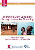This publication is a summary report of the seminar “Improving Slum Conditions through Innovative Financing”, which was jointly organized by the International Federation of Surveyors, FIG and the United Nations Human Settlements Programme (UN-HABITAT) and took place in Stockholm, Sweden on 16–17 June 2008. This two-day seminar, which was dedicated to adequate and affordable housing for all, was an integrated part of the FIG Working Week.