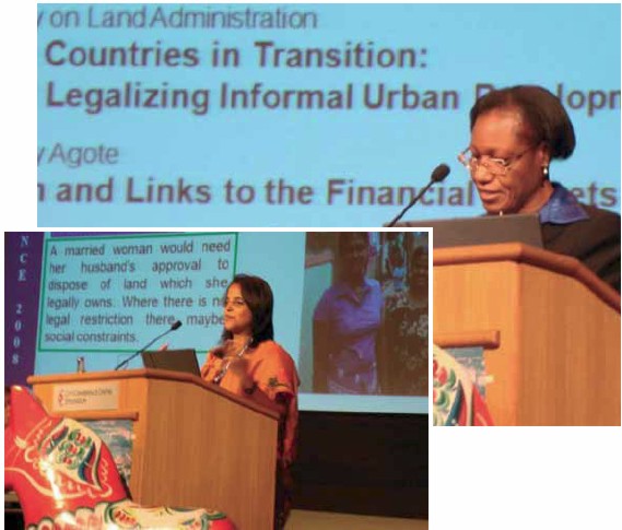 Six participants provided insights on gender issues within existing land tenure systems in Africa (Ethiopia, Ghana, Kenya, Rwanda and Zambia) and Asia (Indonesia, Sri Lanka). The participants each provided a background paper (available on www.justnsustshelter.org) and delivered presentations and inputs in various forums over the two days.