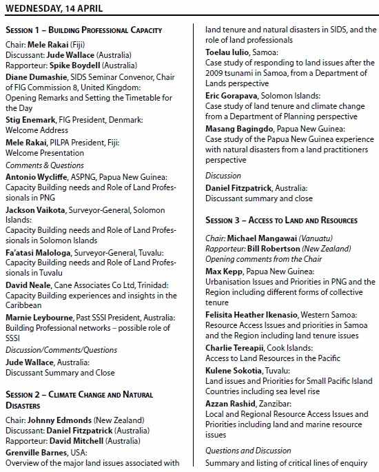 SIDS Seminar, FIG Congress, Sydney, Australia 14th–15th April 2010